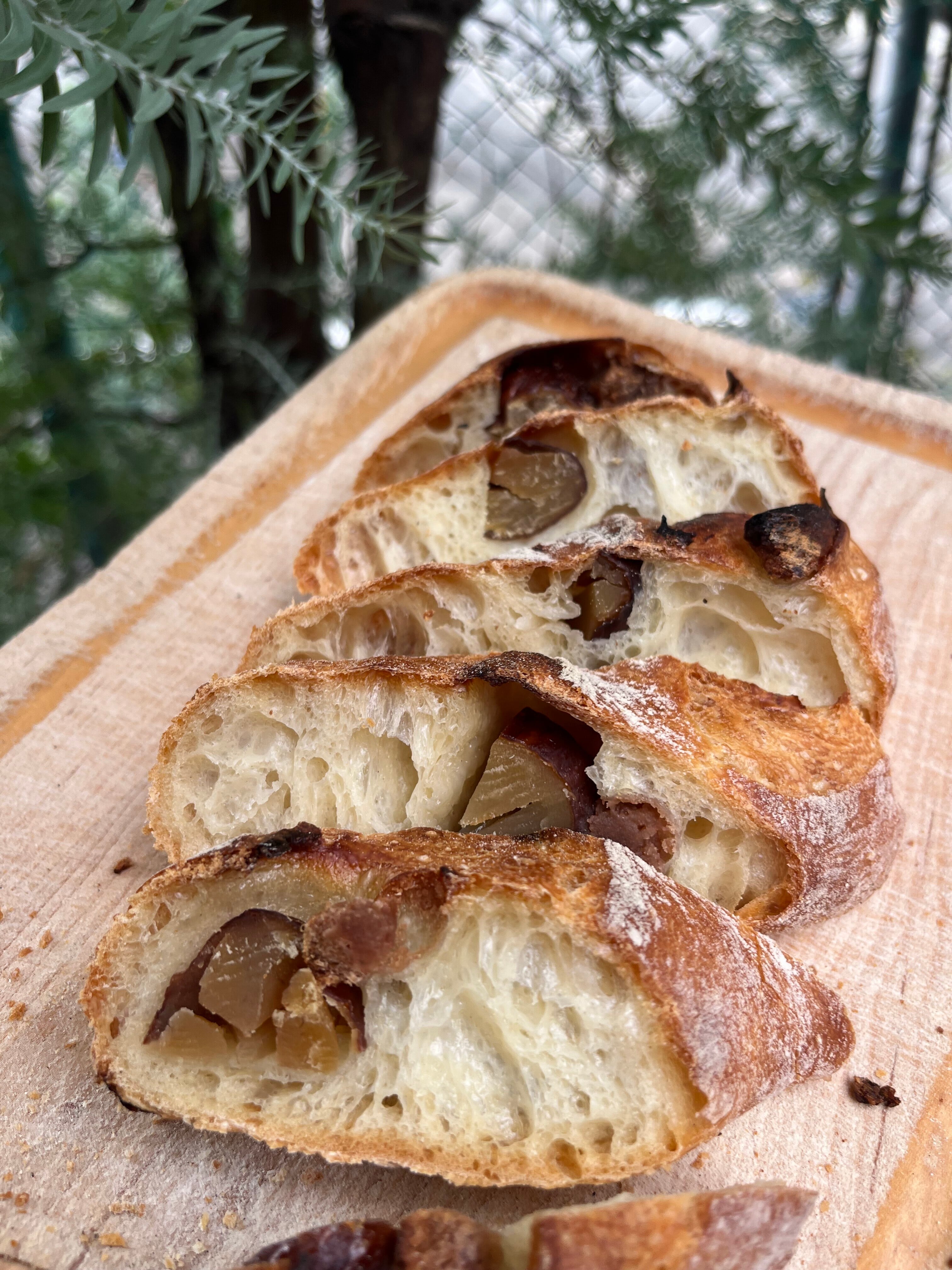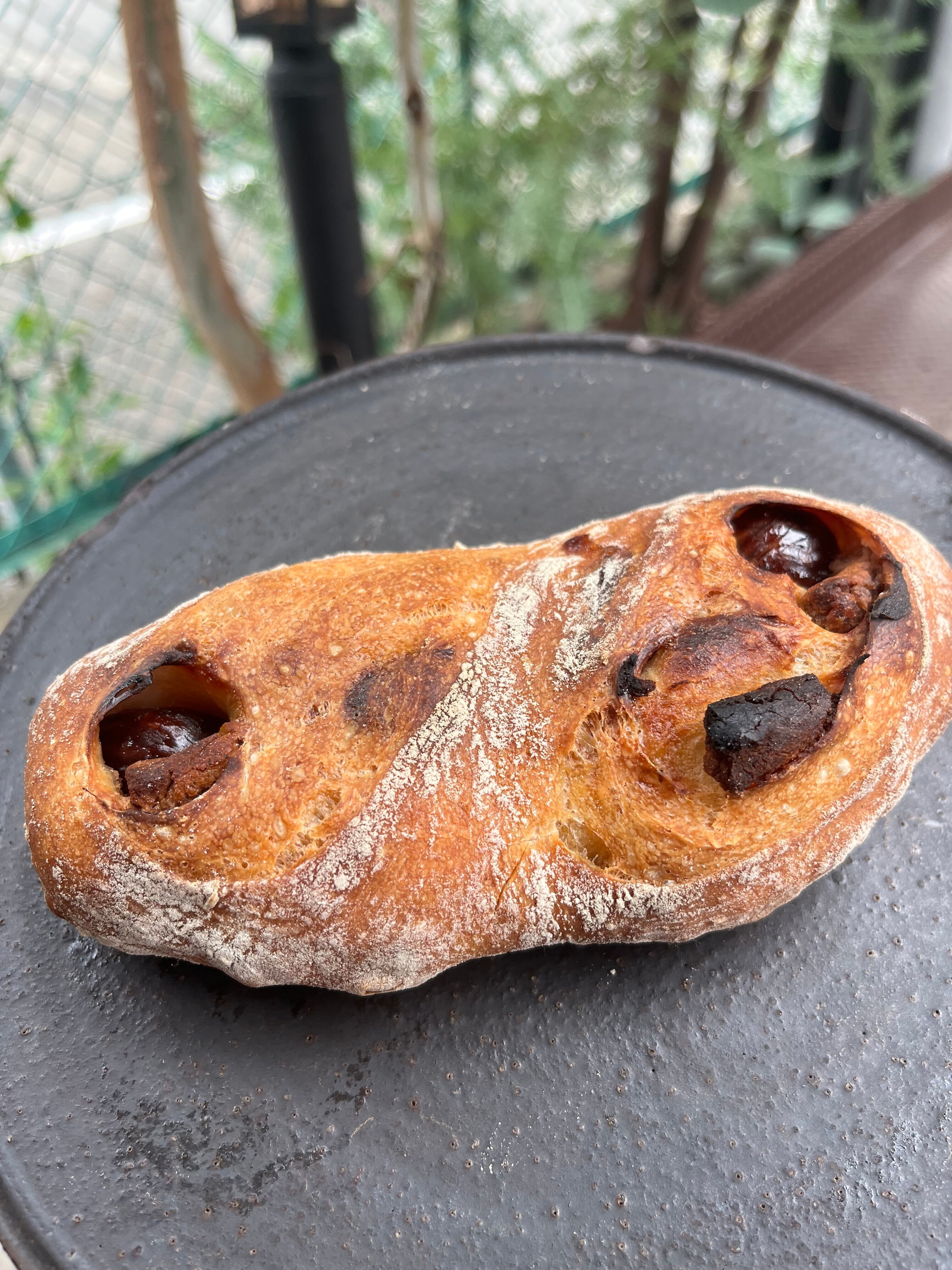Yakichiの自慢のフランスパンに栗の渋皮煮がコロコロ入っています。